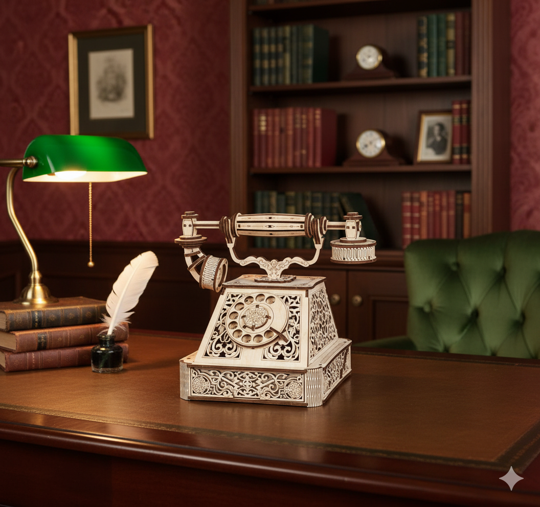 Objevte kouzlo minulosti s tímto nádherným 3D modelem retro telefonu z dílny Eco Wood Art . Tento dřevěný stavebnicový set sestává z 232 precizně vyříznutých dílků , které po sestavení vytvoří věrný model klasického telefonu z minulého století – a to nejen vizuálně, ale také funkčně! Díky zabudovanému mechanismu dokáže simulovat pohyb a zvuk jako skutečný telefon.